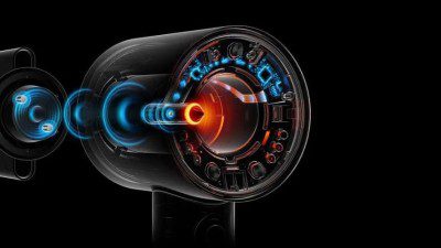 Небольшой, но мощный двигатель Dyson Hyperdymium создает высокоскоростную струю контролируемого воздуха.
