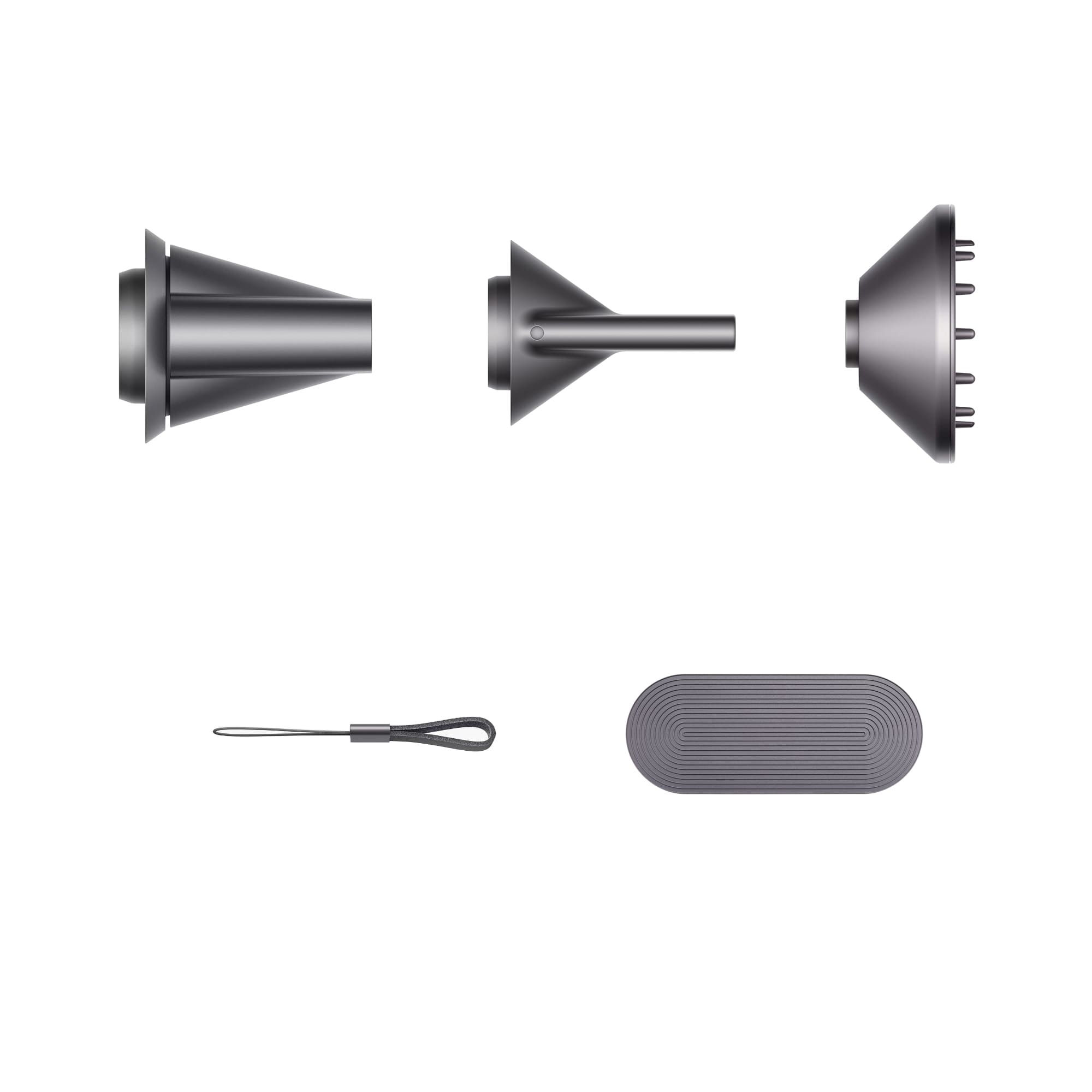 Фен для волос модели Dyson Supersonic Hd01 идет в комплекте с магнитными насадками, которые легко крепятся на устройстве и обеспечивают удобство при пользовании феном.