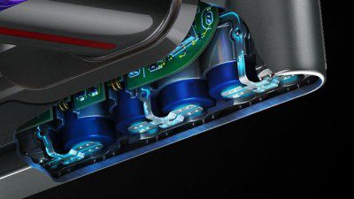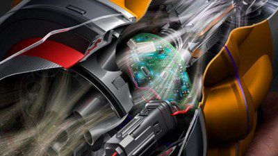 Двигатель Dyson Hyperdymium вращается со скоростью до 125 000 оборотов в минуту, обеспечивая мощность всасывания 240 АВт для тщательной очистки.