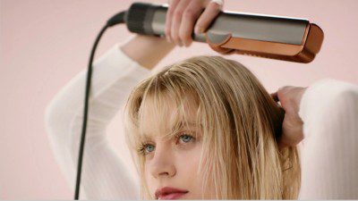 Dyson Airstrait работает под любым углом. Разделите волосы с помощью заколки для волос Dyson для разделения на секции и методично работайте по всей голове для достижения наилучшего результата.